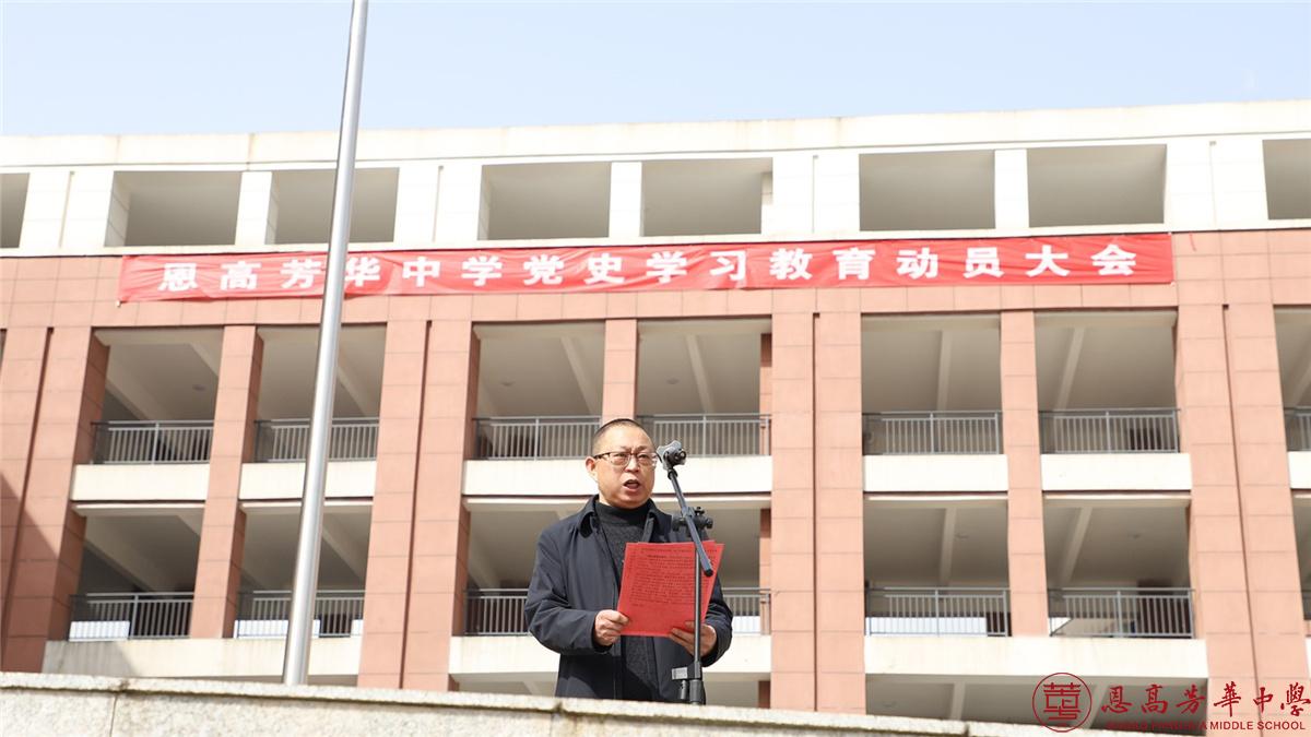 赵明华强调,全校各级党组织要高度重视、精心组织,高标准高质量落实具体工作安排,确保党史学习教育取得实效:一要持续开展个人自学。党员、干部要认真学习习近平总书记在党史学习教育动员大会上的重要讲话精神及其他指定学习等材料,坚持读原著、学原文、悟原理。 二要按期开展专题学习。校党总支领导班子、党员领导干部和学校党支部要带头学党史、讲党史、懂党史、用党史,以“关键少数”带动“绝大多数”。三要统筹做好党史教学。把“四史”学习教育贯穿学校立德树人全过程、融入教育教学各环节、师生学习生活各方面。四要组织开展系列活动。立足恩高芳华实际,深入开展“从小学党史,永远跟党走”“学习新思想,做好接班人”“新时代好少年·向雷锋学习”等系列活动。五是努力解决实际问题。开展“我为群众办实事”实践活动,进一步提升办学及管理质量,保障和改善民生,助力恩施教育事业高质量发展。