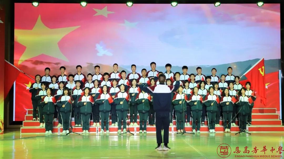 一支支红歌响彻校园,《中国人》、《歌唱祖国》、《走向复兴》、《在灿烂的阳光下》……这些让人热血沸腾的歌声,带领师生们重温了中国共产党与中华儿女共同建设伟大祖国的光辉历程。铿锵的旋律、整齐的队列、优美的动作,无不展现学子们神采奕奕的精神风貌。