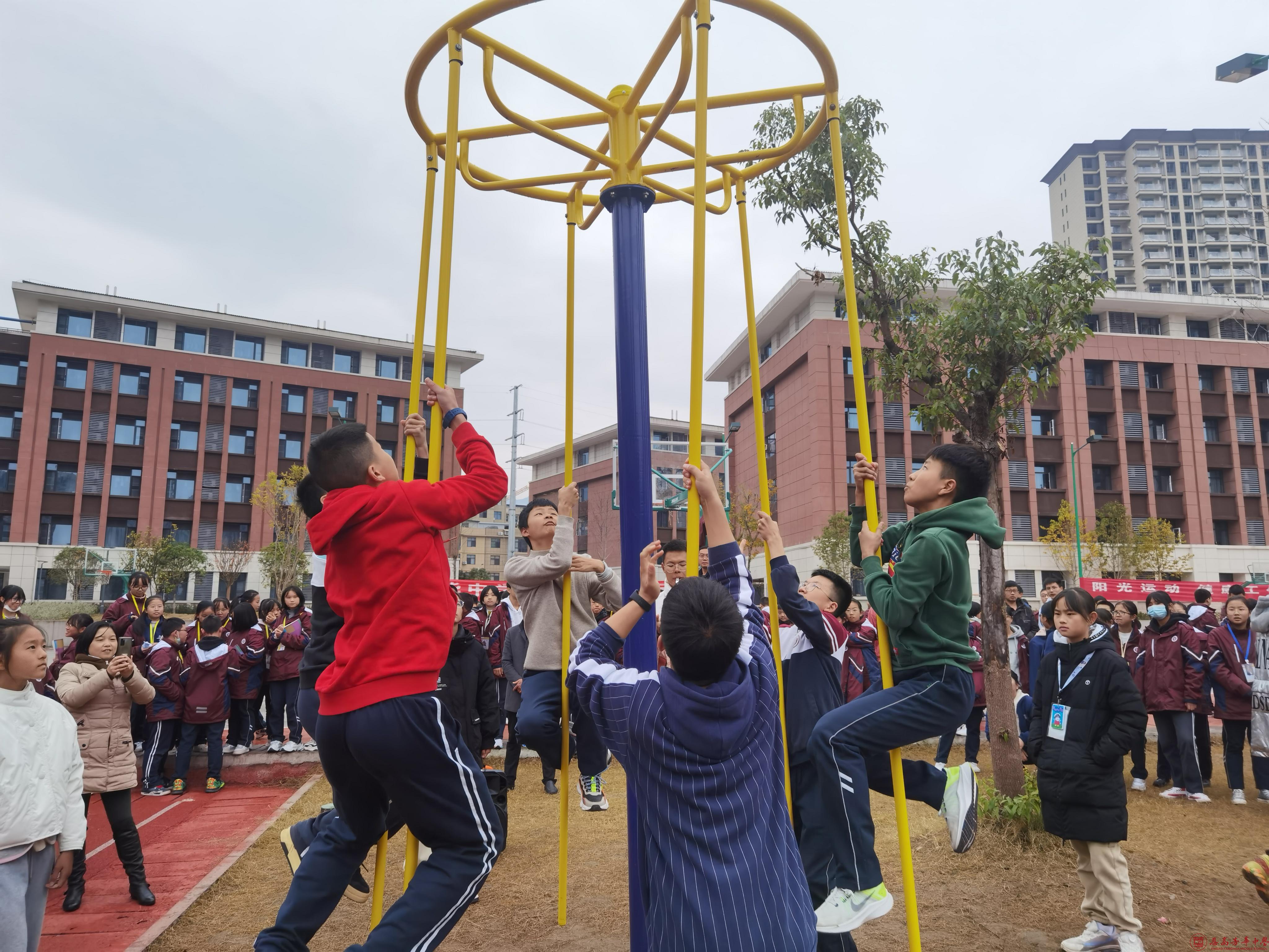 孩子们身轻如燕,俏皮可爱,如美猴王一般爬上铁杆,他们尽情享受爬杆带给他们的快乐!