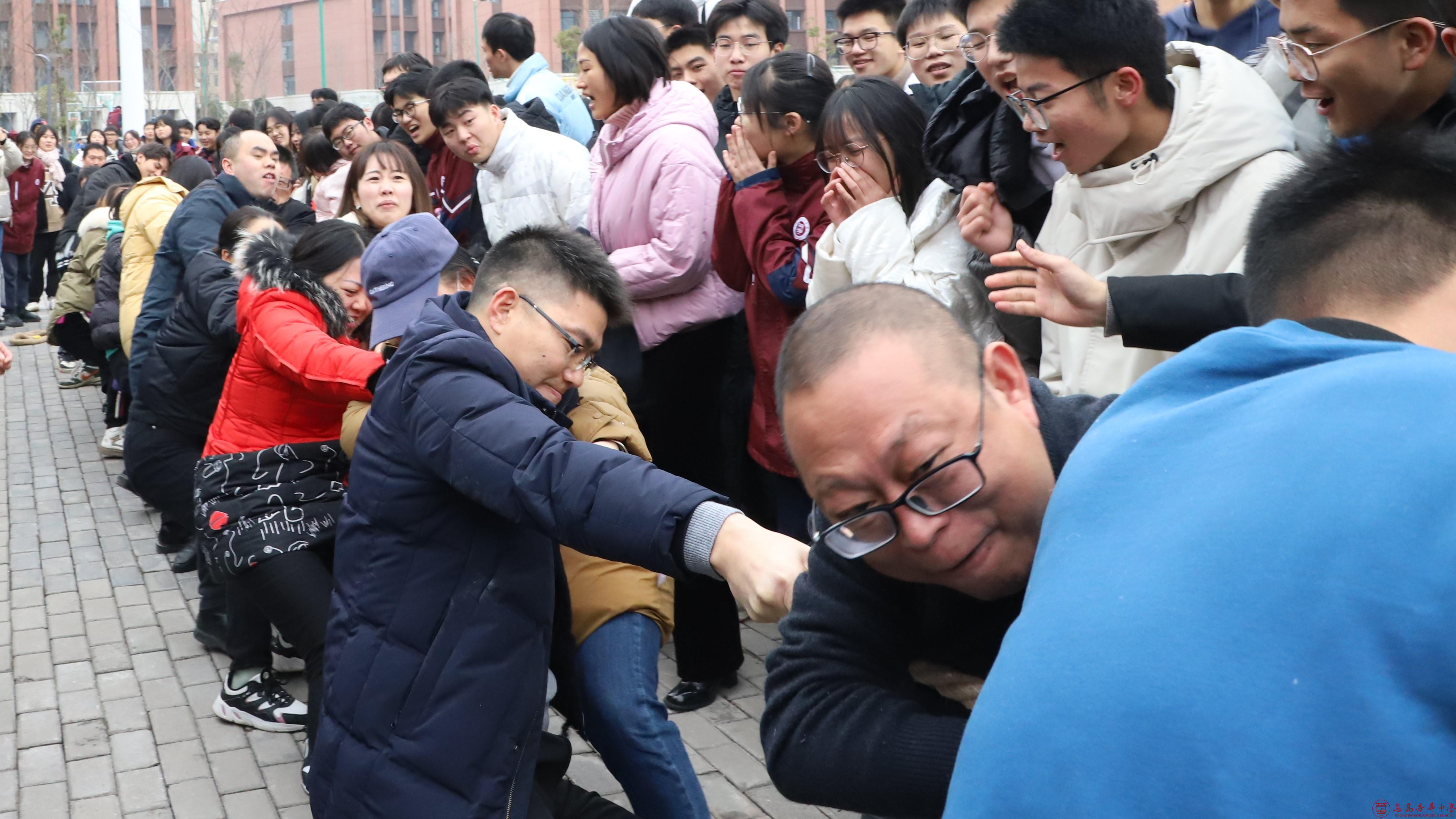 本次拔河比赛教职工组于12月31日上午举行,参赛队伍以年级为单位,每组男、女职工各10人,分为初中组、高一年级组、高二年级组和行后组。各参赛组采取抽签方式确定初赛对手,采取三局两胜淘汰制。一根长长的拔河绳,凝聚着竞赛双方的勇气、智慧和力量,承载着团队的激情、自信和活力。经过激烈的角逐,最终决出一等奖行后队,二等奖初中队,三等奖高一队,优秀奖高二队。