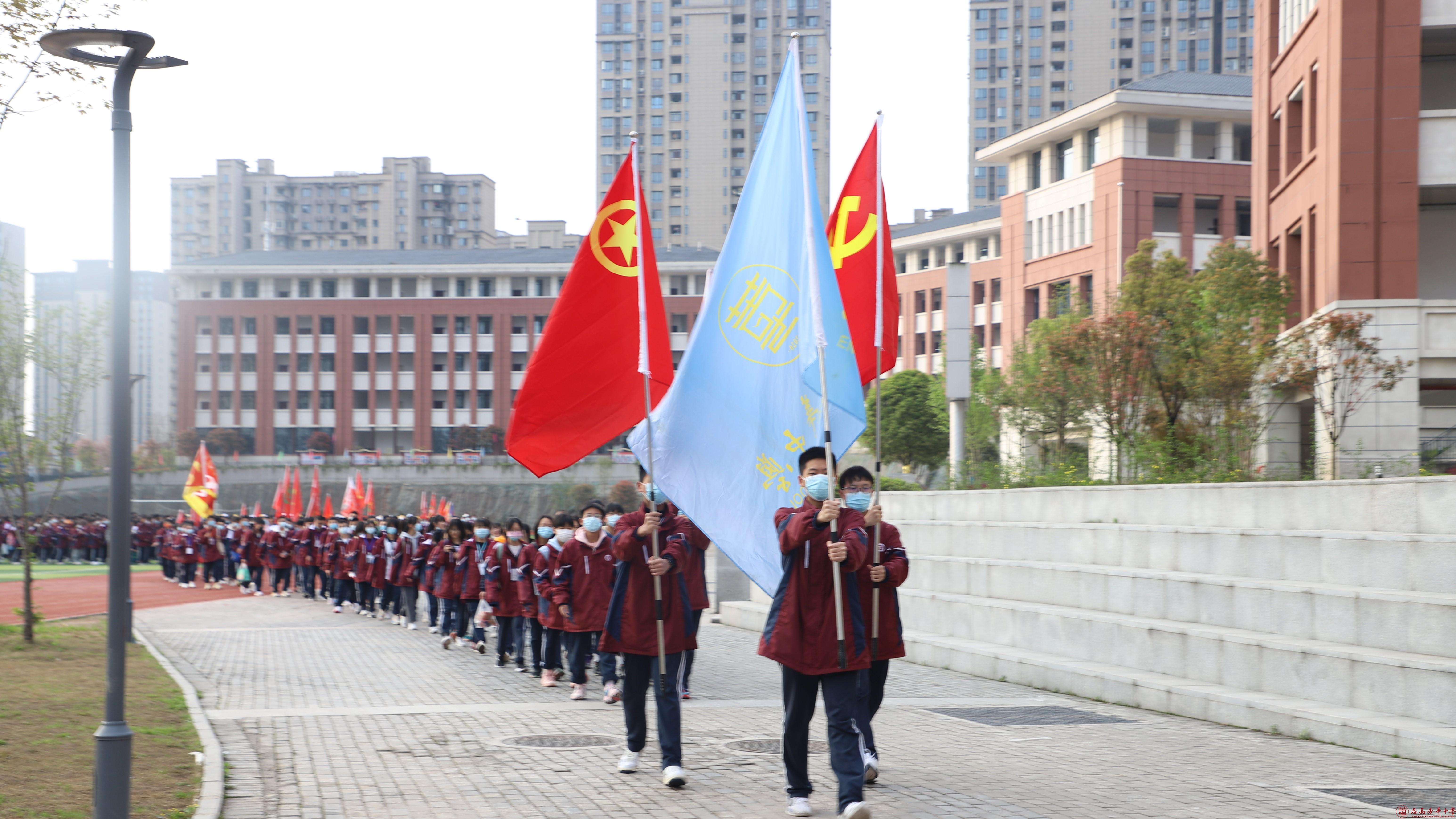 远足前,校长赵明华在学校田径场作动员讲话。他指出:学校组织这次远足祭扫活动,既是为了缅怀先烈,传承红色精神,同时也是为了培养我们坚韧不拔的意志,百折不挠的精神,团结友爱的情怀,艰苦奋斗的作风。这些优良的品质是我们整个中学阶段最宝贵的精神财富,对我们的一生都会产生积极的影响。