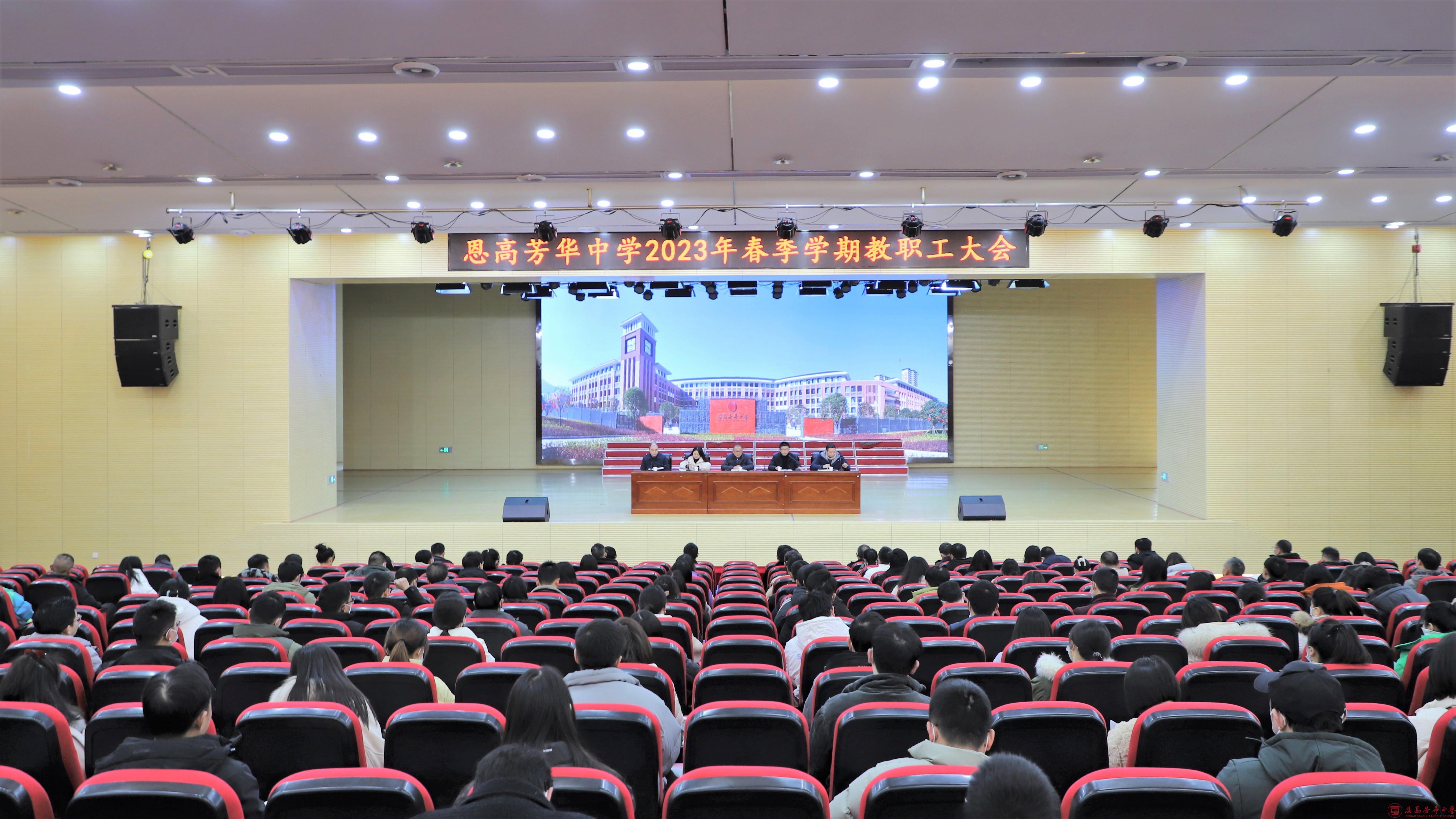 校长赵明华从形势、任务、出路、状态等四个方面同全体教职工进行了交流。赵校长首先就当前学校面临的形势做了剖析,指出面对后疫情时代经济下行、政策收紧等社会状况,学校依旧任重而道远。赵校长说到,在本学期的工作中,要着力抓好班风、学风、教风、校风等“四风”建设,每一个芳华人心往一处想,力往一处使,为首届中考和高考的胜利贡献自己的力量。讲话最后,赵校长指出面对挑战,我们要有精神、有信心、有斗志,用我们的精神去召唤学生,用我们的信心去鼓舞学生,用我们的斗志去催生学生。