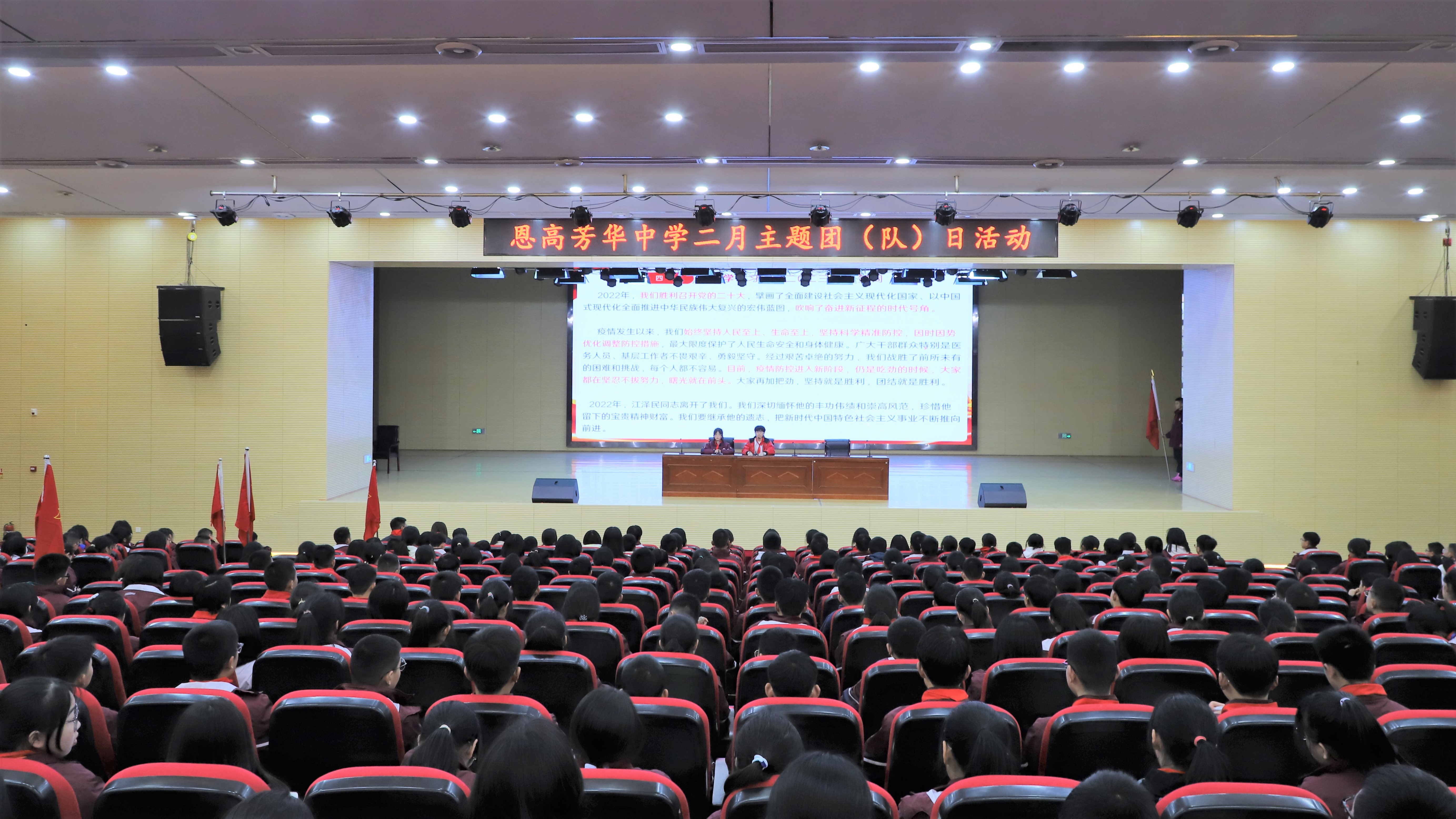 2月27日下午,团委利用班团会时间召集全体学生团员和全体少先队员在我校多功能报告厅开展集中学习。学习内容主要为国家主席习近平发表的二〇二三年新年贺词、共青团十八届七中全会会议精神、共青团中央印发《关于深入学习宣传贯彻党的二十大精神团结引领广大青年在全面建设社会主义现代化国家进程中建功立业的决议》的通知。全体少先队员还学习了恩施市芳华初级中学少先队争章细则以及一星章少先队员评定原则。