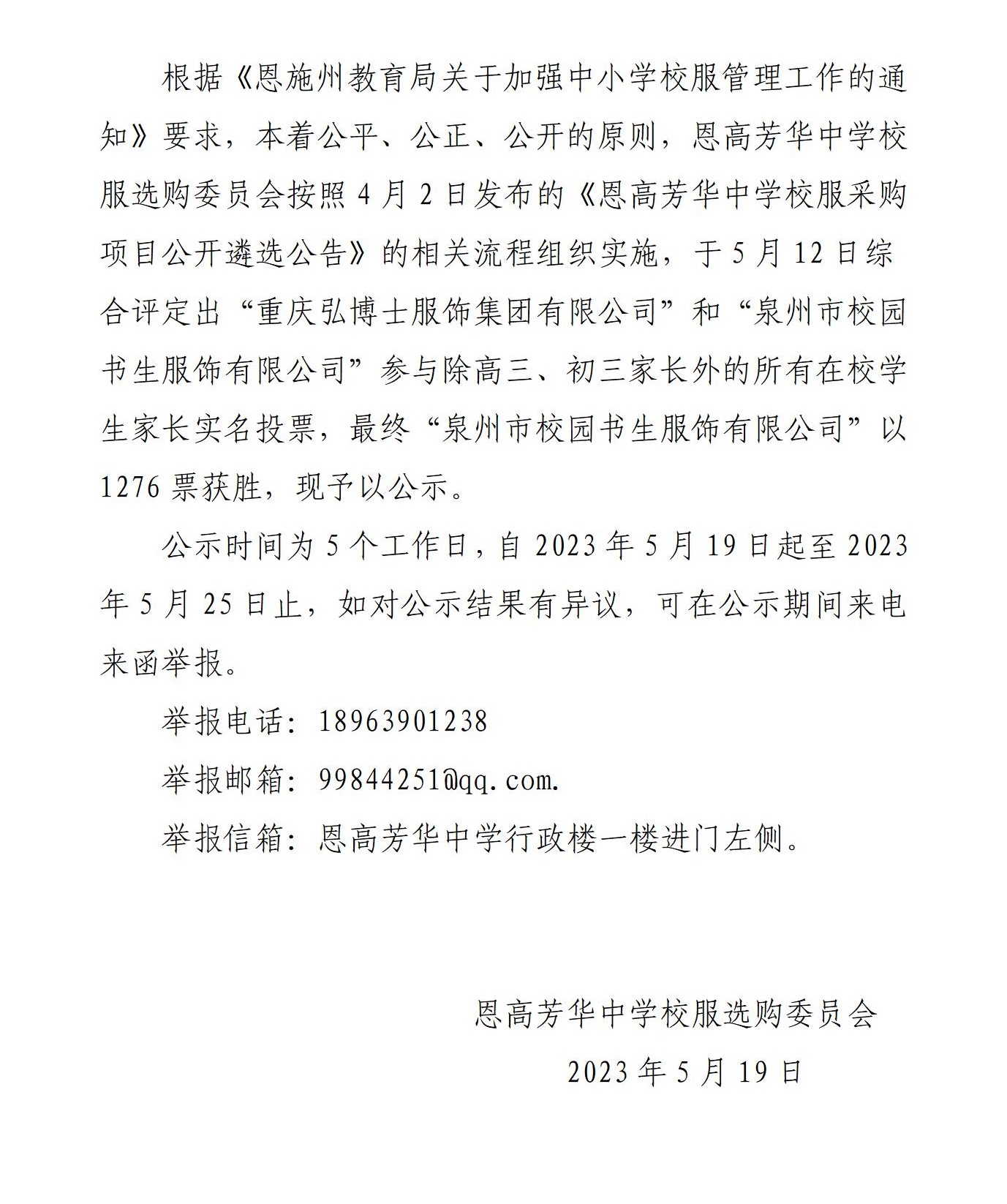 恩施市芳华初级中学2024年秋季学期收费项目和收费标准公示栏