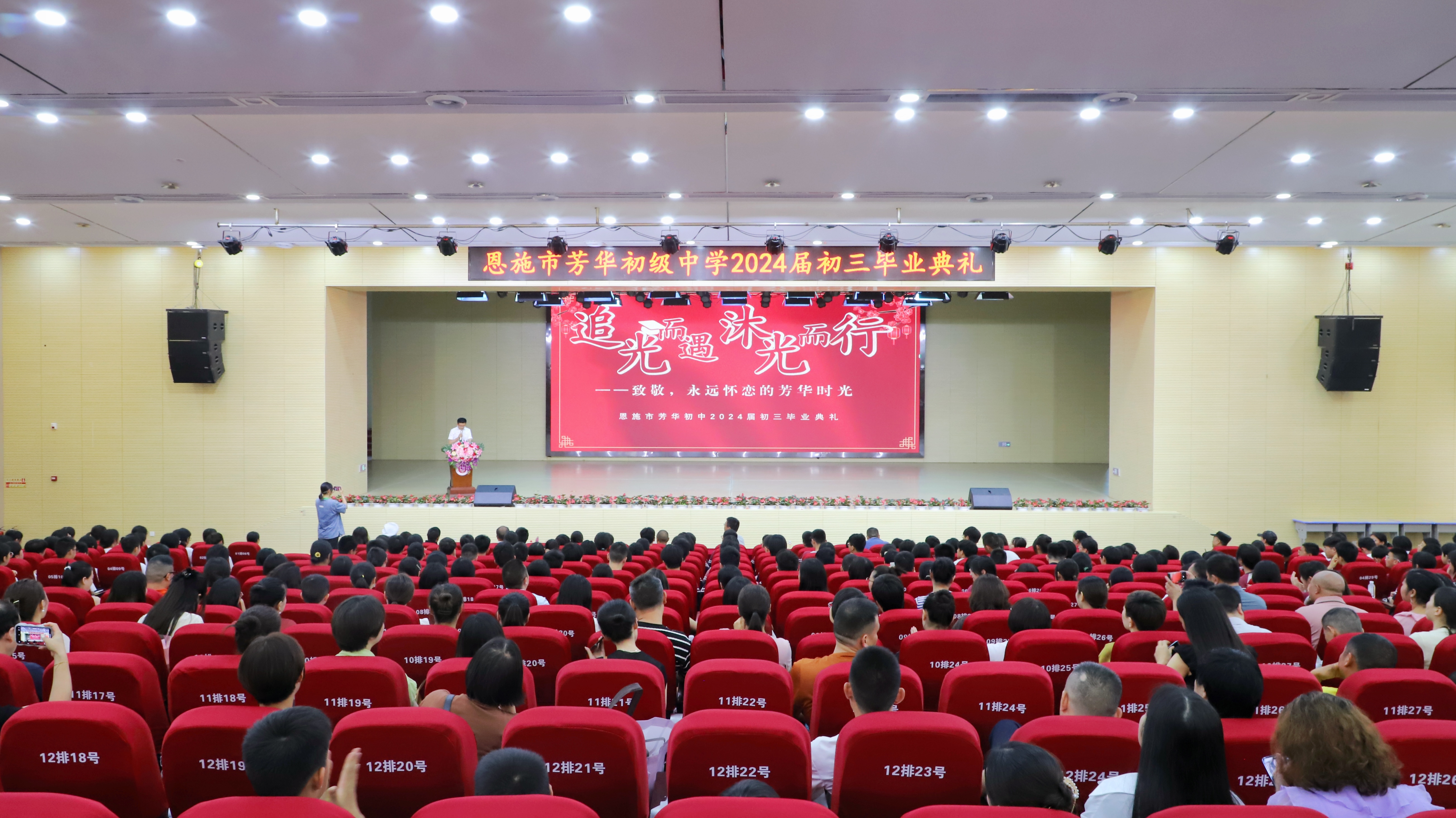 6月15日,恩施市芳华初级中学2024届初三毕业典礼在学校报告厅举行。现金买球校长赵明华,副校长温倩、王琦、万宏卫出席典礼;学校中层干部,全体初三师生,军事教官、保安、寝管、食堂工作人员、保洁、行后工作人员代表和部分家长代表参加活动。典礼由学校副校长、芳华初中校长刘本洲主持。
