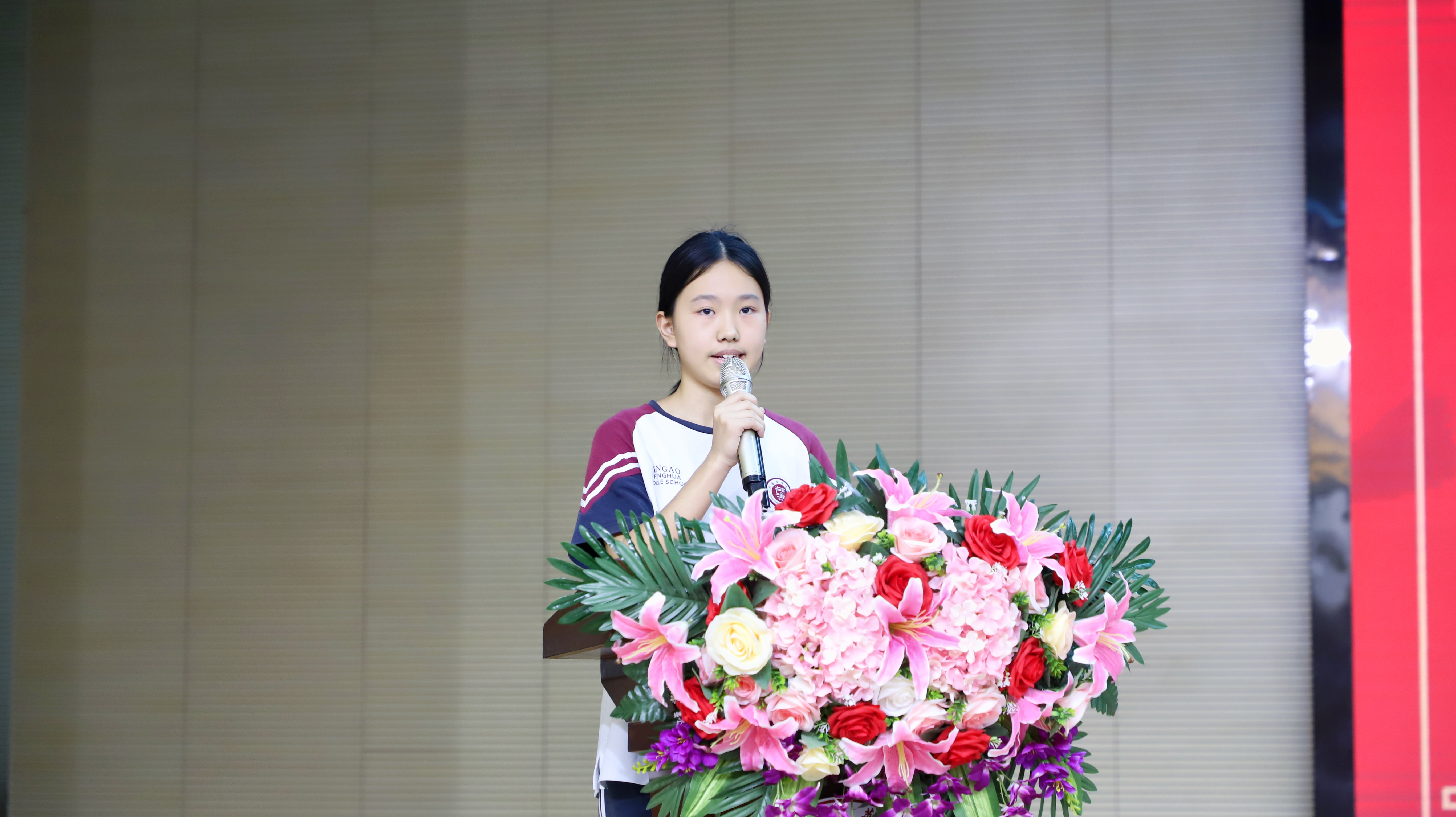 九年级“超越三班”卢依珂同学代表芳华初中2024届毕业生发言,她说,与芳华的故事,始于2021年初秋,终于2024年盛夏,在芳华的三年美好时光,离不开所有人的努力和付出,感谢美丽温暖的芳华校园,感谢有情怀有深度的老师,感谢兢兢业业、默默无闻的守护者们。